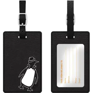 This premium black leather bag tag is perfect for identifying your luggage with style. Made from high-quality leather, it features a sleek design that ensures your bags stand out while remaining professional. The durable construction withstands the rigors of travel, making it an essential travel accessory.