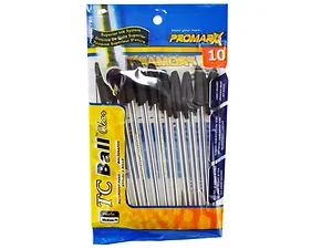 Perfect for any writing task at home or in the office, this set of ten black stick pens offers a reliable ink flow with a medium point tip. Each pen comes with a cap to ensure that your ink stays fresh and protected. Conveniently packaged in a poly bag with a hanging hole, these pens are a must-have for your desk or pencil case.