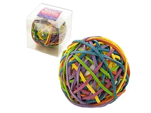 This vibrant Multi-Colored Rubber Band Ball is perfect for creative play and everyday use. Made with 40 assorted rubber bands wound around a sturdy Styrofoam base, it offers endless possibilities for building and imaginative play.