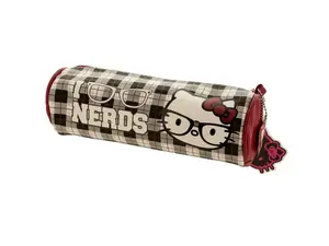 This adorable Hello Kitty Nerdy Plaid Pencil Case is perfect for school and everyday use. It features a stylish black and white plaid print with vibrant red sides, showcasing an image of Hello Kitty wearing stylish glasses. Accompanied by the fun phrase "I [glasses] NERDS", this pencil case is both functional and trendy.