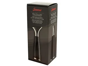 Compatible with most wine bottles and all types of corks, this corkscrew measures approximately 8.5 inches tall with a 2.125-inch diameter base. It comes packaged in an individual box that measures about 4.125 x 3.375 x 10.125 inches.