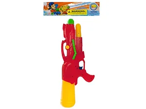 Experience epic water battles with the Futuristic Super Pump Action Water Blaster! This vibrant toy features a sleek design, a large water tank, and efficient pump action that allows you to shoot a powerful stream of water. Simply fill the blaster with water, pump to pressurize, and pull the trigger for an exciting splash! Measuring approximately 20" long x 7.25" tall, it is perfect for outdoor fun. Ideal for ages 3 and up. Available in assorted colors, it comes packaged in a poly bag with a header card.