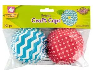 Unleash your creativity with our Colorful Paper Craft Cups Set! This vibrant set includes 101 pieces featuring a delightful mix of blue chevron and red polka dot designs, perfect for craft projects and baking cupcakes. Each set comes with 100 high-quality paper cup liners and an instructional sheet filled with exciting craft ideas. Suitable for ages 3 and up, this set is ideal for parties, art activities, or simply having fun at home.