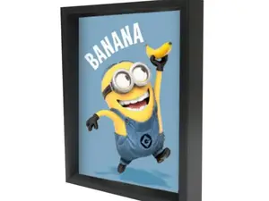 This delightful Minions 3D Shadowbox is perfect for adding a whimsical touch to your kids' rooms. Featuring a charming three-dimensional image of a Minion joyfully holding a banana, this artwork brings a smile to any space. The design is encased in a sleek black box frame, providing an elegant touch to your child's decor.