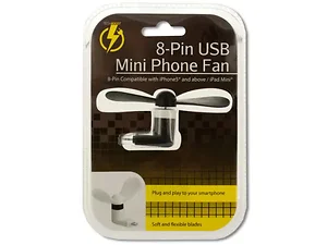 Enjoy a nice, cool breeze directly off your phone with this Micro USB Mini Phone Fan featuring a small, durable plastic fan with two soft, flexible blades. Fan is powered simply by plugging it into your phone's USB port. Measures approximately 3.5" wide x 1.5" tall. Compatible with Android smartphones. Comes in assorted colors: black and white. Comes packaged in a clam shell.