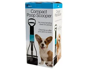 Cleaning up after your pet is a cinch with this hassle-free Folding Poop Scooper. Great for fast yard cleanup, simply squeeze the handle and large jaws open at the bottom to scoop and quickly close with spring action. Scooper is made of durable plastic with strong metal springs. Measures approximately 25" long when unfolded. Comes packaged in an individual box. Box measures approximately 6" x 6.25" x 13".
