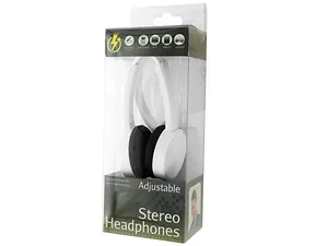 Ideal for high quality listening from stereos or various devices, these White Adjustable Stereo Headphones feature compact headphones with a comfortable, padded fit in a foldable design with super soft, cushioned ear pieces. Use these headphones with smartphones, mp3 players, PCs, tablets, gaming devices and more. Cord has a 3.5mm standard plug. Total cord length: 4'. Comes packaged in a hanging box. Box measures approximately 3.25" x 2.375" x 8.75".