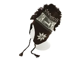 Great for keeping warm on cold days, this Insulated Snowflake & Reindeer Design Knit Hat features a multi-color knit cap with a winter design, Mohawk-inspired fringe, soft fleece lining, matching pom pom at the top and twisted ties for added decoration and a comfortable, snug fit. Made of 100% acrylic. Comes in assorted colors. One size fits most. Comes packaged with a hang tag.