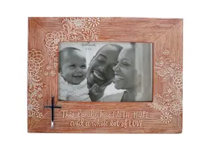 Bulk Buys OT638 Faith & Family Terracotta Photo Frame with Cross Accent