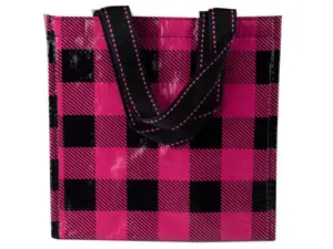 Bulk Buys OT920 Stylish Insulated Pink Plaid Lunch Tote with Velcro Closure
