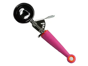 Enjoy the delightful experience of serving ice cream with our Stainless Steel Ice Cream Scooper. This high-quality scooper features a durable stainless steel scoop and an ergonomic pink rubberized handle that provides a comfortable grip. Perfect for serving ice cream in cones or cups, this scooper is approximately 9 inches in length, making it easy to use.