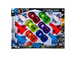 This exciting 12 Pack Car and Jet Play Set is perfect as a party favor or a gift for any young car enthusiast. Watch as children engage in thrilling races between their pull-back cars and spring-action jets. Each set includes a vibrant selection of cars in red, yellow, orange, blue, purple, and green, along with stylish jets in white, orange, and blue. Packaged conveniently in an 11" x 8.50" x 1" box, it's an ideal choice for fun and adventure!
