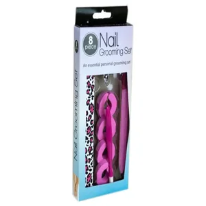 The Essential Nail Grooming Set is a comprehensive eight-piece kit designed to help you maintain your nails with ease. It includes an emery board, a nail file, four toe separators, a cuticle trimmer and pusher, and a professional nail clipper. Perfect for keeping your nails looking healthy and well-groomed, this set is ideal for both personal use and gifts.