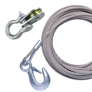 50' x 7/32" Stainless Steel Universal Premium Replacement Galvanized Cable with Pulley BlockFor all manual and electric trailer winches. High chromium content and added nickel make these cables virtually impervious to corrosion and add years of service. Ideal for any winch using 7/32 inches diameter cable, designed for handling boats up to 11,500 pounds, superior 7 x 19 strand cable construction for maximum pulling strength. Complete installation instructions included. Available with heavy duty zinc plated pulley block.
