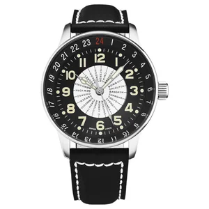 Zeno P554WT-B1 Men's P554WT-B1 'Pilot' X-Large world timer Limited Edition Black Dial Black/White Leather Strap Automatic Watch Zeno P554WT-B1 Men's P554WT-B1 'Pilot' X-Large world timer Limited Edition Black Dial Black/White Leather Strap Automatic Watch features a stainless steel 44mm case, with a fixed bezel, a black dial and a scratch resistant mineral crystal. The 22mm leather band is fitted with a tang clasp. This beautiful wristwatch, powered by Swiss automatic movement. This watch has a water resistance of up to 1000 feet/300 meters, suitable for recreational swimming, not for diving and snorkeling. Features: Brand: Zeno Model number: P554WT-B1 Case Shape: Round Dial window material type: Scratch Resistant Mineral Display Type: Analog Clasp: Tang Case material: Stainless steel Case diameter: 44 millimeters Case Thickness: 16 millimeters Band Material: Leather Band length: 8 millimeters Band Width: 22 millimeters Band Color: Black Dial color: Black Bezel material: Stainless Steel Bezel function: Fixed Movement: Automatic Water resistant depth: 300 meters UPC: 7640172573020 Zeno P554WT-B1 MSRP: $ 1995