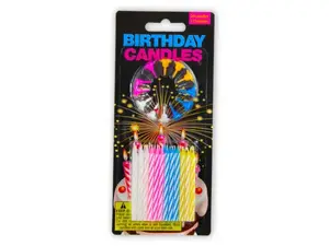 Enhance your birthday celebrations with this vibrant 36-piece Birthday Candles with Decorative Holders Set. This set includes 24 colorful candles and 12 matching holders, designed to securely hold the candles in place while adding a festive flair to your cake. Each candle stands approximately 2 1/4 inches tall, perfect for fitting in various cake sizes. Please keep candles out of reach of children. Packaged conveniently in a blister pack for easy storage and gifting.