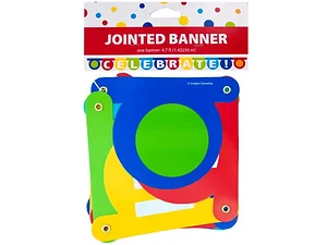 This vibrant CELEBRATE Jointed Party Banner is perfect for any joyful celebration. Its colorful design spells out the word "CELEBRATE" in large, bold letters, making it an eye-catching addition to your party decor.