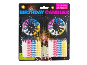 Bulk Buys PA081 Colorful Birthday Candles with Reusable Holders - 96 pcs