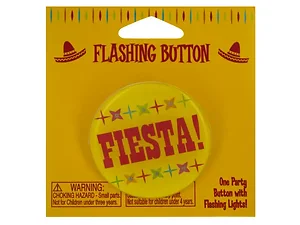 The Fiesta Flashing Button is an exciting accessory for your next celebration! Get ready to stand out with this eye-catching button that lights up in vibrant colors!