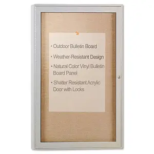 This enclosed outdoor bulletin board is perfect for displaying important information and announcements. With a sleek satin finish, it measures 36 inches by 48 inches, making it an ideal size for community centers, schools, and businesses.