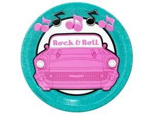 Enhance your 50's Rock and Roll themed party with these vibrant party plates. Designed to reflect the iconic style of the era, these plates will add a fun touch to your celebrations.
