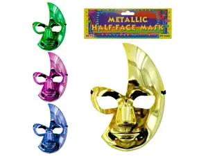 This colorful metallic half face mask is made from sturdy plastic, ensuring durability for various occasions. Perfect for cosplay, Halloween, or festivals, the mask comes in an assortment of vibrant colors. The attached elastic strap ensures a comfortable and secure fit.