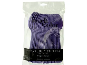 Enjoy your favorite meals and desserts with our vibrant purple plastic spoons. This 24 count pack is perfect for parties, picnics, or everyday use.