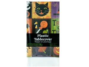 Add a festive touch to your Halloween celebrations with this vibrant Halloween Patchwork Plastic Tablecover. Measuring 54 inches by 108 inches, it provides ample coverage for your table, protecting it from spills and scratches while enhancing your decor.