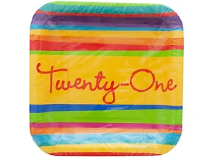 Celebrate the milestone of turning 21 with style using our Colorful 21st Birthday Square Snack Plates Set. Designed for festive gatherings, these plates feature a vibrant "Twenty-One" banner that beautifully stands out against a colorful striped background.