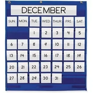 Monthly chart offers a versatile, easy-to-read, unique monthly calendar for the classroom year-round. Seven columns and six rows provide a pocket for each day of the month. Chart includes English and Spanish month and day cards. Use included Hook-and-loop closures for attaching a weekly calendar (sold separately). Attach month chart easily to the Weekly Calendar Pocket Chart.