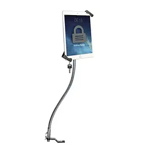 This flexible tablet mount allows you to safely display your tablet at any angle in the front seat of your car. Designed for use with commercial and passenger vehicles alike, this drill-free car mount installs easily to your vehicle?s seat rail using included mounting hardware and can be safely removed at any time. The flexible gooseneck can be repositioned to support your tablet at any angle while still providing enough rigidity to withstand stops, starts, and turns. The slide-adjustable tablet holder also tilts and rotates 360 degrees for portrait and landscape orientations, protecting your tablet from theft with a powerful lock and key security system. Its unique corner-grip design prevents tablet removal when locked and allows full access to your tablet?s ports, buttons, cameras, and headphone jack, for card reader compatibility. Features: Mounts to your vehicle?s seat rail with no drilling required . Flexible gooseneck can be repositioned for easy angle adjustment . Lock and key security system protects tablet from theft . Tablet holder tilts and rotates 360 degrees for portrait and landscape orientations . Unique corner-grip holder allows access to all ports, buttons and jacks . Perfect for passenger or commercial vehicles, like taxis, delivery trucks, emergency vehicles, and more . Compatible with 7-14 inch tablets, including iPad Pro 12.9, iPad mini, iPad Air, Surface Pro 4, Galaxy Tab S3, and more.