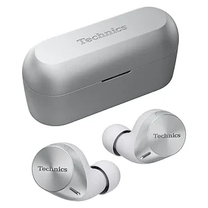 • 8 mm drivers deliver rich, expansive sound; supports LDAC(TM) high-resolution wireless audio codec for uncompromised sound quality;• Frequency response: 20 Hz to 40 kHz (LDAC(TM) 96 KHz/990 Kbps);• TWS technology for truly wire-free experience; ability to talk or listen to music with either left, right, or both earbuds;• Multipoint connectivity for easily and reliably pairing to more than 2 Bluetooth(R) devices to easily switch from computer to mobile devices ;• Easily activates paired phone's voice assistant, Amazon(R) Alexa(R), or Siri(R);• JustMyVoice(TM) technology uses 8 individual microphones and advanced wind noise reduction for clear calls that amplify words and reduce outside sounds;• Dual Hybrid feed-forward and feedback noise cancelling with analog and digital processing for high-fidelity listening;• Ability to customize settings via Technics(R) Audio Connect app;• Multiple earpiece sizes ensure optimal comfort and noise cancellation;• Earbuds are water-resistant (IPX4) to resist sudden showers and sweat;• Up to 7 hours of battery life with automatic noise cancelling on; up to total of 24 hours from cradle charge; 15-minute quick charge yields up to 70 minutes of playback time;• Includes charging case, 7 sizes of silicone earpieces (XS1, XS2, S1, S2, M, L, and XL), .66 ft. USB Type-A to USB Type-C(R) charging cable, quick-start guide, and owner's manual;• Silver;