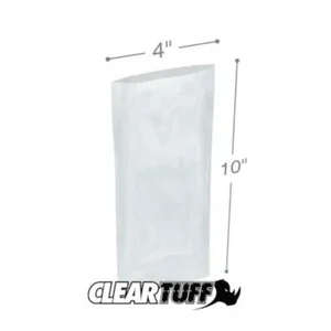 International Plastics Inc PB10410 Clear Flat Poly Bags 4" x 10" - 1.25 Mil Thickness