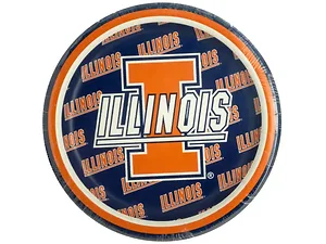 Celebrate special occasions with the University of Illinois Dessert Party Plates Set! This set includes 8 durable round cardboard plates featuring a vibrant design in dark blue, orange, and white, showcasing the iconic University of Illinois logo at the center. Each plate measures approximately 6 7/8 inches in diameter, making them perfect for serving desserts or snacks at game days, parties, or alumni events. Comes conveniently shrink wrapped for easy handling.