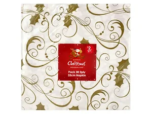 Add a touch of elegance to your holiday gatherings with our Festive Christmas Wonderland 2-Ply Lunch Napkins. This 30-piece set features beautifully designed white napkins embellished with golden brown holly leaves and charming festive swirls. Each napkin measures approximately 13" x 13" and is perfect for your Christmas parties and celebrations. Each pack comes shrink wrapped for convenience and safety.