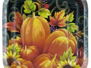 Bulk Buys PB801 Pumpkin Tapestry Square Plates for Halloween Parties