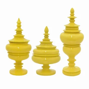 Add a vibrant touch to your home decor with these elegant yellow resin jars. Perfect for storing small items or as decorative pieces, this set of three jars will enhance any space. Made from high-quality resin, they combine functionality with style.