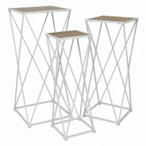 Plutus Brands PBTH93592 White Metal and Wood Plant Stand Set of 3 by