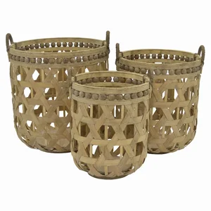 Plutus Brands PBTH93855 Elegant Wood and Bamboo Basket Set of 3 in Brown