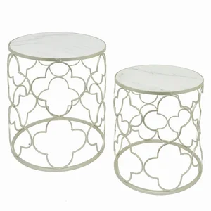 Elevate your living space with this stylish set of two marble top metal tables in a sleek silver finish. Perfect for adding a modern touch to any room, these tables are versatile and functional.
