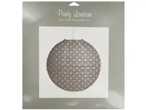 This stylish Grey & White Polka Dot Paper Lantern adds a charming touch to your celebrations. Perfect for weddings, birthdays, and other special occasions, this round paper lantern features a playful polka dot design. It includes a sturdy metal frame and a nylon hang cord for easy setup.