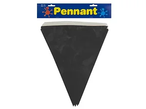 Add a touch of elegance to your celebrations with our Black Triangle Pennant Banner. Perfect for birthdays, Halloween, or any festive occasion, this eye-catching banner is made of durable black plastic and consists of connected triangle pieces.