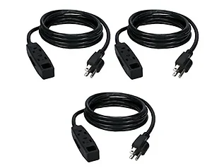 Qvs PC3PX-15-3PK 15FT 3-Prong Heavy-Duty Power Extension Cord - 3 Pack