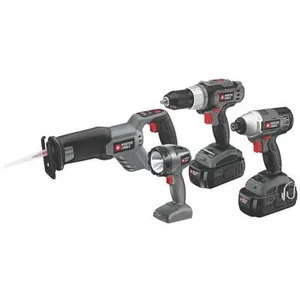 The Porter-Cable 18V NiCD 4-Tool Combo Kit is your ultimate solution for tackling a variety of home improvement projects. This versatile kit includes a drill/driver, a circular saw, a reciprocating saw, and a work light, all powered by reliable 18V NiCD batteries.