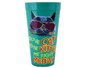 Perfect for any cat lover, this You've Cat to Be Kitten Me Tumbler Cup is great for parties, picnics, camping, and everyday hydration. Made from durable plastic, it showcases a playful design featuring a cool cat wearing sunglasses along with the humorous phrase, 'You've Cat to Be Kitten Me Right Meow!'. Its size is ideal for holding your favorite beverages.