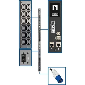 18.7kW (240V), 16.2 (208V) total capacity 26A max per output phase (L1-L2, L2-L3, L3-L1) 20A max per breakered outlet bank 12A max per C13 outlet