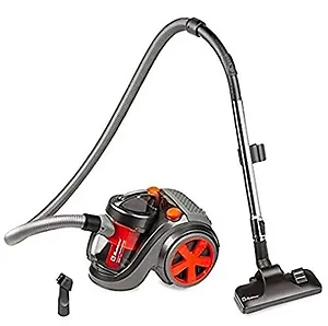 • 1,300 watt motor;• Bagless;• Pleated filter;• High-level suction;• Ideal for hard floors, carpets and mats;• Retractable power cord;• Includes flexible hose, telescopic metal tube, combined floor and carpet 2-in-1 tool, and crevice tool with dusting brush;• Orange/Gray;