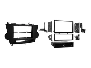 • For use when replacing original factory radio and requires this dash kit to make it fit;• Fits Toyota(R) Highlander 2008 through 2012 models without original factory navigation; fits any standard 2-in. (single-DIN) or 4-in. (double-DIN) aftermarket radio ;• Made from highest-quality ABS plastic for original, factory-like fit and finish;• Painted scratch-resistant matte black to match original look and feel of vehicle's dashboard;• Easy to install utilizing Metra's patented quick-release, snap-in ISO mount system with custom trim ring;• Includes housing, brackets, trim plates, pocket, and detailed installation instructions;