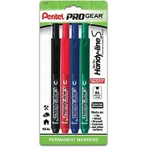 Permanent markers feature a retractable design that uses a seal mechanism that automatically covers the tip for easy access with just a single hand. Pocket-safe clip self-retracts when clipped to prevent creating random marks. Nontoxic, low-odor ink helps prevent irritation for safe use. Refillable design can be used with Pentel refills (sold separately) to reduce waste. Permanent markers in assorted colors are perfect for marking on wood, drywall, tile, concrete and more.