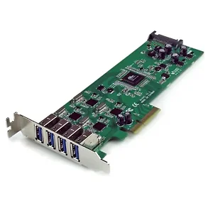Add 4 SuperSpeed USB 3.0 ports to your PC with the StarTech.com 4-Port PCI Express USB 3.0 Controller Card. This low-profile card connects via a PCI Express x4 slot and provides maximum bandwidth of up to 5 Gbps per port. Compatible with a wide range of operating systems, it includes a built-in SATA power connector that enables each USB port to deliver up to 900mA of power to connected devices.